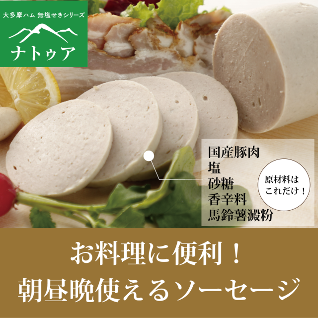 いつもながら美味しい無塩せきシリーズの福袋の品々に喜びいただいております。1人暮らしなので購入量が少なく申し訳ありません。ソーセージはスーパーなどでは販売されないのでしょうか。覚めてもおいしくお弁当に1品にもうってつかとおもうのですが~。